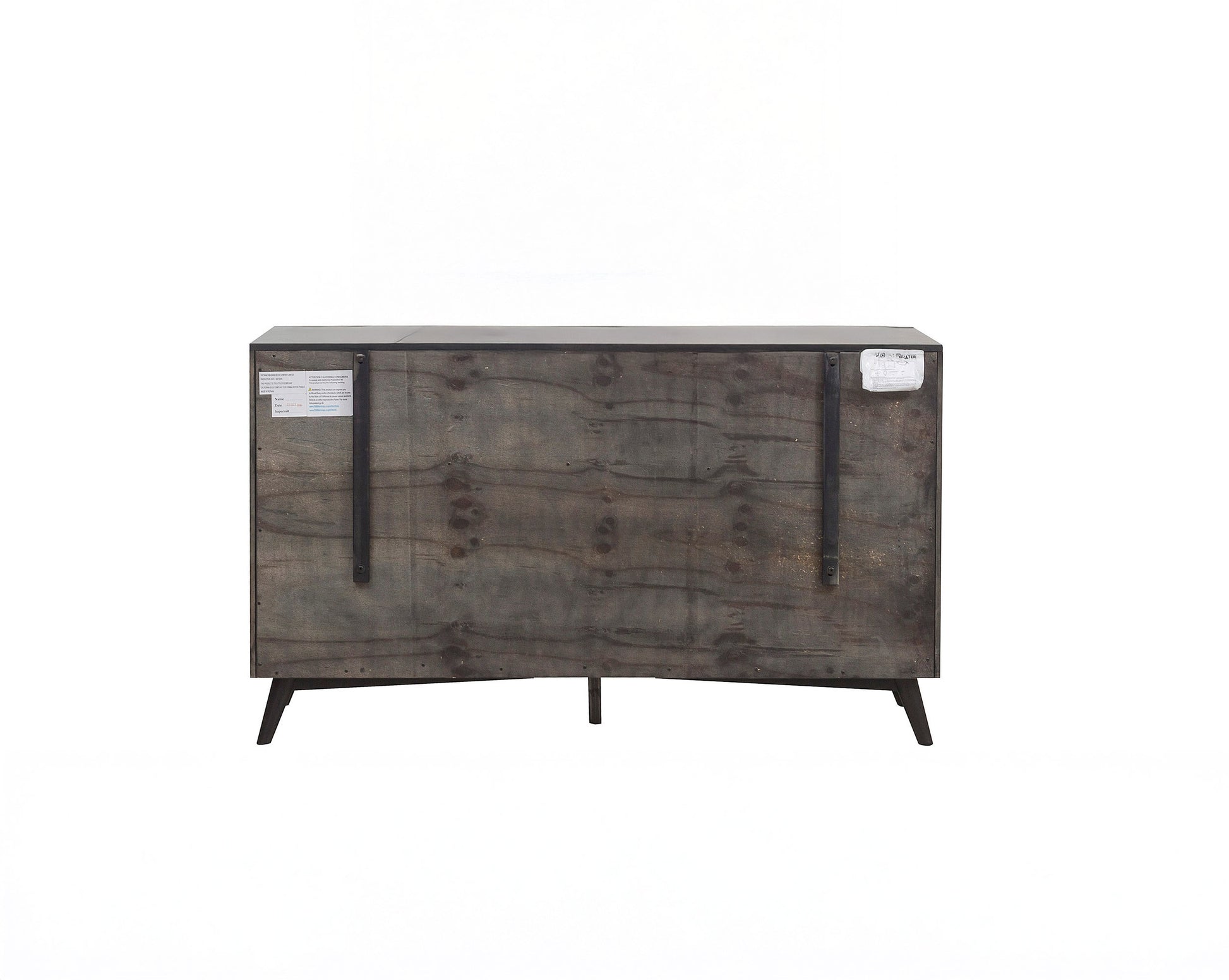 Modern Two-Tone Finish: A rich black frame contrasts with weathered gray drawer fronts for a clean, stylish look.