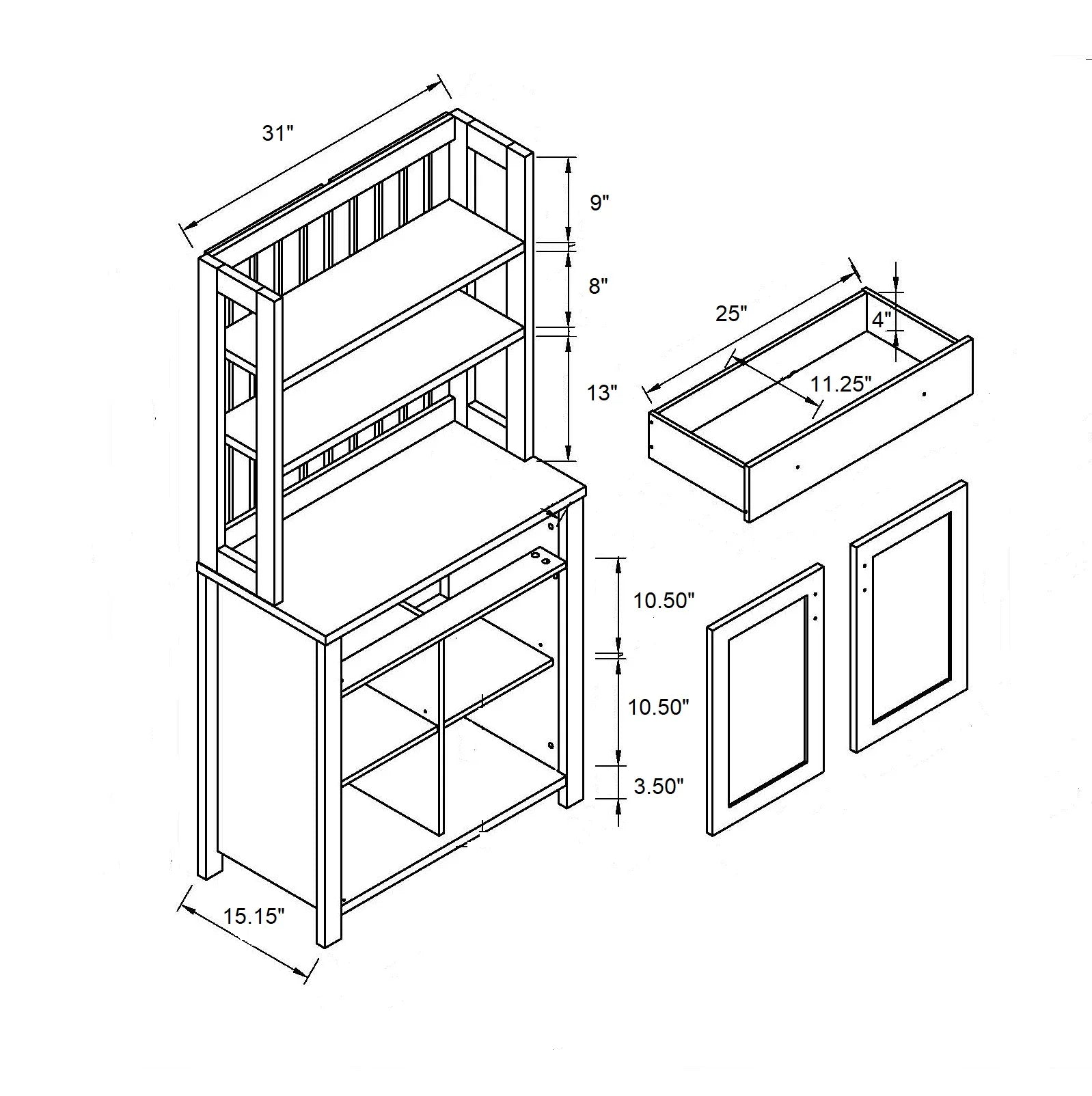 Description: Marble and wood-designed baker's cabinet. Featuring three shelves, one drawer, and a two-door cabinet with four interior shelves.